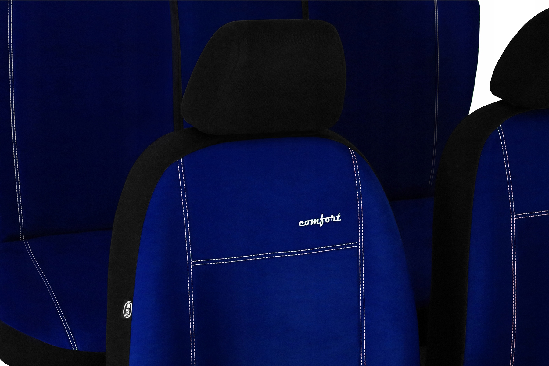 Pokrowce serii COMFORT zostały uszyte (w częściach przednich) z wysokiej jakości alkantary (syntetycznej odmiany zamszu). Materiał jest dodatkowo laminowany i podszyty pianką wzmacniając pokrowce i zapobiegając ich przesuwaniu. Dzianina poliestrowa w kolorze czarnym została użyta do pleców, boków oraz zagłówków. Zastosowana miękka alkantara jest materiałem mocnym, odpornym na ścieranie i uszkodzenia mechaniczne, jest bardzo łatwa w utrzymaniu czystości - wystarczy przetarcie ścierką z mikrofibry. W pokrowcach pierwszego rzędu przygotowano haft comfort, a poszczególne elementy połączono podwójnym grubym, szyciem. Materiał nie farbuje, nie powoduje alergii. Plecy pokrowców przednich foteli są pełne, standardowo zastosowano szew airbag. Polski produkt firmy z ponad 20 letnim doświadczeniem - firma Pokter