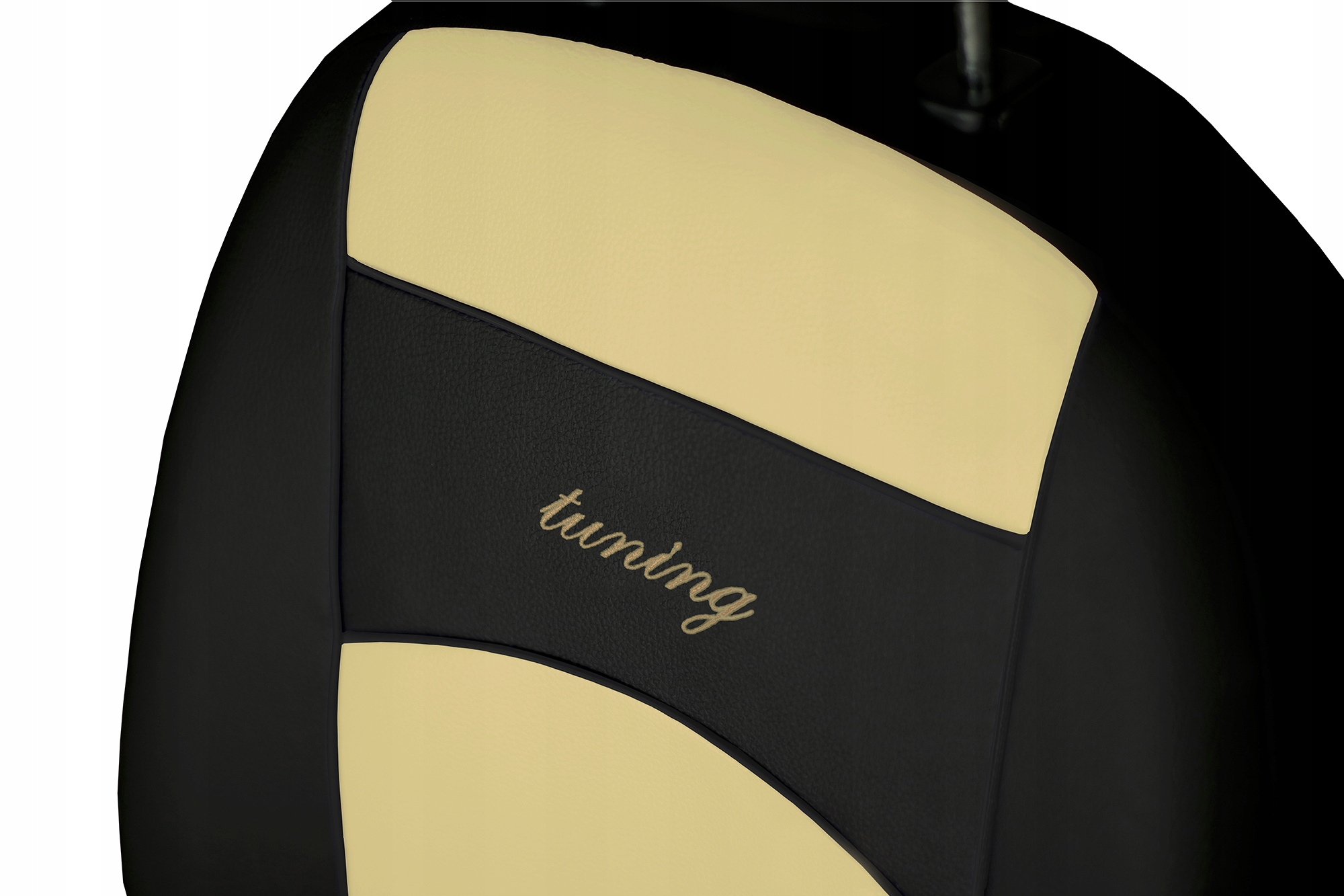 Pokrowce serii Tuning Standard zostały uszyte z wysokiej jakości ekoskóry (części przednie) oraz z dzianiny poliestrowej w kolorze czarnym (plecy, boki oraz zagłówki). Użyta ekoskóra jest materiałem mocnym, odpornym na ścieranie i uszkodzenia mechaniczne oraz nieprzemakalnym, przez co jest bardzo łatwa w utrzymaniu czystości. Materiał nie farbuje, nie powoduje alergii. Plecy pokrowców przednich foteli są pełne, standardowo zastosowano szew airbag. Na frontach dwóch przednich fotelach wszyto napis Tuning. Poszczególne elementy wzmocniono lamówką. Polski produkt firmy z ponad 20 letnim doświadczeniem - firma Pokter