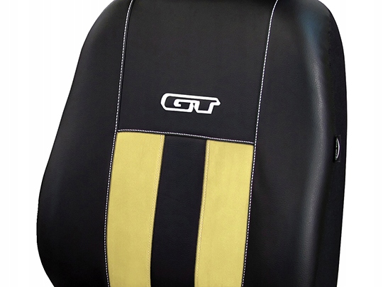 Pokrowce serii Grand Turismo GT zostały uszyte w częściach przednich z wysokiej jakości ekoskóry (w kolorze czarnym) oraz alkantary (syntetycznej odmiany zamszu) w pasach środkowych. Materiały są dodatkowo laminowane i podszyte pianką. Dzianina poliestrowa w kolorze czarnym została użyta do pleców, boków oraz zagłówków. Użyta ekoskóra i miękka alkantara są materiałami mocnymi, odpornymi na ścieranie i uszkodzenia mechaniczne, przez co pokrowce są bardzo łatwe w utrzymaniu czystości. W przednich częściach pokrowców przygotowano haft GT, a poszczególne elementy połączono grubym, podwójnym szyciem. Materiał nie farbuje, nie powoduje alergii. Plecy pokrowców przednich foteli są pełne, standardowo zastosowano szew airbag. Polski produkt firmy z ponad 20 letnim doświadczeniem - firma Pokter