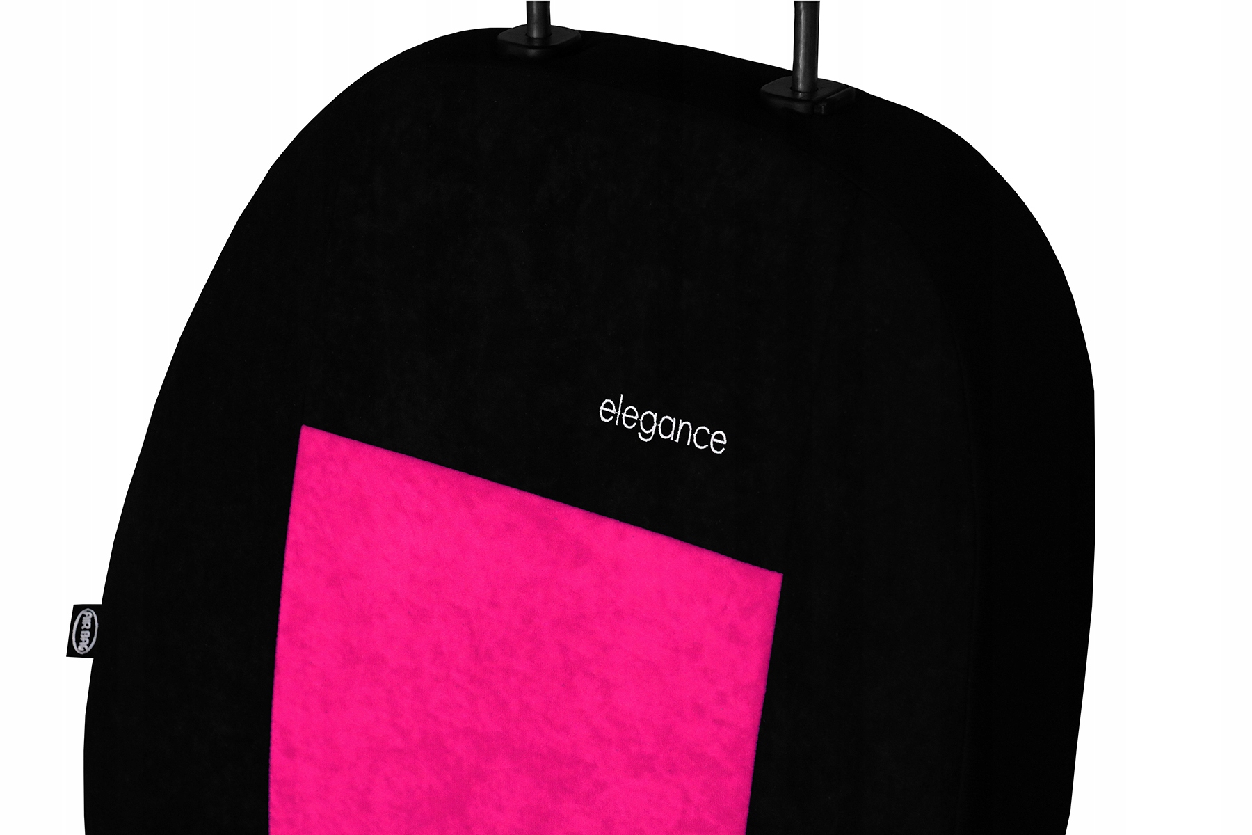 Pokrowce serii ELEGANCE zostały uszyte z materiału typu welur. Welur został wytworzony z przędzy runowej, dzięki czemu jest wyjątkowo miękki i puszysty. Materiał (w częściach przednich) jest dodatkowo laminowany i podszyty pianką wzmacniając pokrowce i zapobiegając ich przesuwaniu. W pozostałych częściach (boki, plecy, zagłówki) zastosowano czarny materiał tapicerski (poliester). Materiał nie farbuje, nie powoduje alergii, pokrowce można prać w pralce w 30 stopniach. Plecy pokrowców przednich foteli są pełne, standardowo zastosowano szew airbag. Na frontach foteli przednich wszyto haft Elegance. Polski produkt firmy z ponad 20 letnim doświadczeniem - firma Pokter