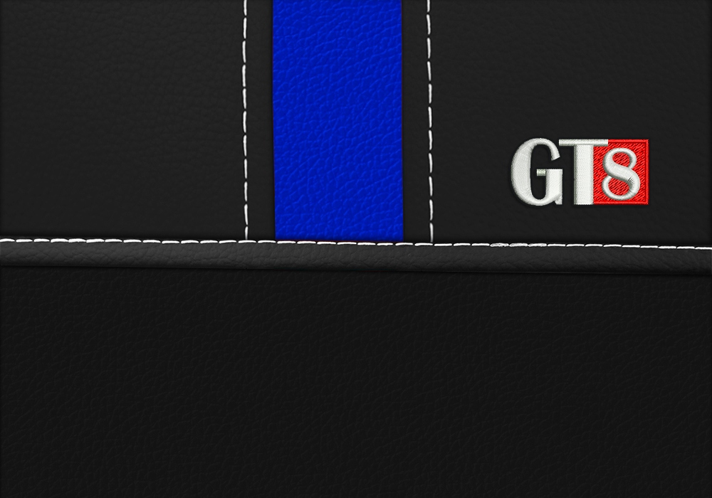 Pokrowce serii GT8 zostały uszyte w częściach przednich z wysokiej jakości ekoskóry oraz alkantary (syntetycznej odmiany zamszu) w pasach środkowych (w kolorze czarnym). Materiały są dodatkowo laminowane i podszyte pianką. Dzianina poliestrowa w kolorze czarnym została użyta do pleców, boków oraz zagłówków. Użyta ekoskóra i miękka alkantara są materiałami mocnymi, odpornymi na ścieranie i uszkodzenia mechaniczne, przez co pokrowce są bardzo łatwe w utrzymaniu czystości. W przednich częściach pokrowców przygotowano haft GT8, a poszczególne elementy połączono grubym, podwójnym szyciem. Materiał nie farbuje, nie powoduje alergii. Plecy pokrowców przednich foteli są pełne, standardowo zastosowano szew airbag. Polski produkt firmy z ponad 20 letnim doświadczeniem - firma Pokter
