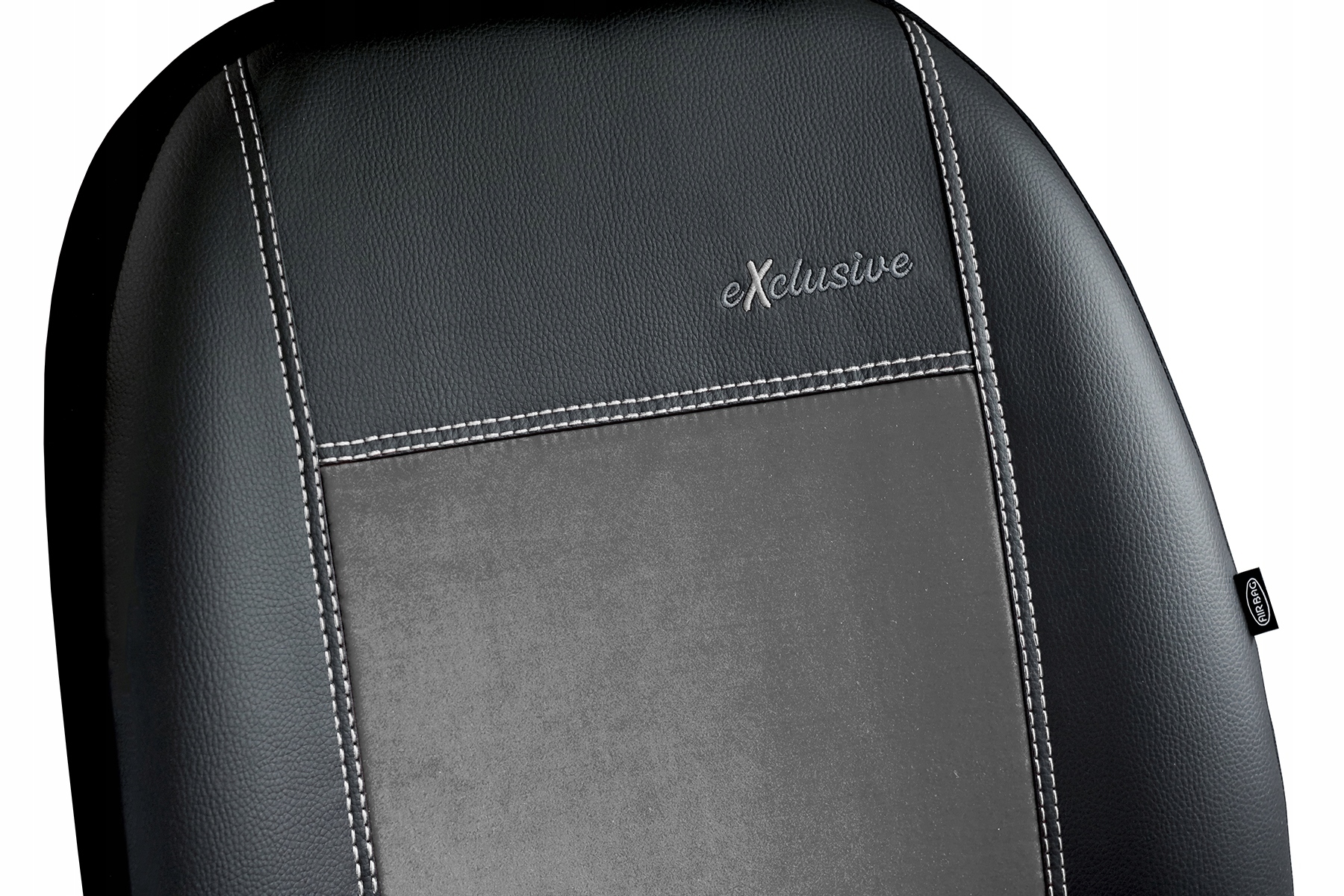 Pokrowce serii Exclusive Akantara zostały uszyte w części przedniej z wysokiej jakości ekoskóry (w kolorze czarnym) oraz alkantary (syntetycznej odmiany zamszu) w pasie środkowym. Materiały są dodatkowo laminowane i podszyte pianką. Dzianina poliestrowa w kolorze czarnym została użyta do pleców, boków oraz zagłówków. Użyta ekoskóra i miękka alkantara są materiałami mocnymi, odpornymi na ścieranie i uszkodzenia mechaniczne, przez co pokrowce są bardzo łatwe w utrzymaniu czystości. W przednich częściach pokrowców przygotowano haft eXclusive, a poszczególne elementy połączono grubym, podwójnym szyciem. Materiał nie farbuje, nie powoduje alergii. Plecy pokrowców przednich foteli są pełne, standardowo zastosowano szew airbag. Polski produkt firmy z ponad 20 letnim doświadczeniem - firma Pokter