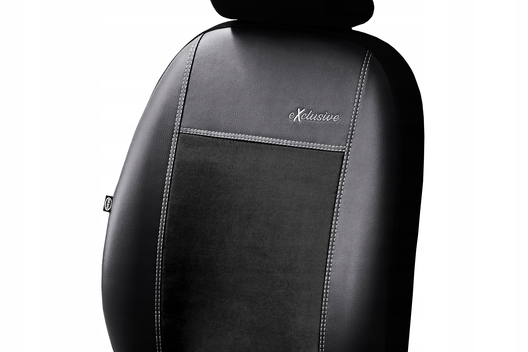 Pokrowce serii Exclusive Akantara zostały uszyte w części przedniej z wysokiej jakości ekoskóry (w kolorze czarnym) oraz alkantary (syntetycznej odmiany zamszu) w pasie środkowym. Materiały są dodatkowo laminowane i podszyte pianką. Dzianina poliestrowa w kolorze czarnym została użyta do pleców, boków oraz zagłówków. Użyta ekoskóra i miękka alkantara są materiałami mocnymi, odpornymi na ścieranie i uszkodzenia mechaniczne, przez co pokrowce są bardzo łatwe w utrzymaniu czystości. W przednich częściach pokrowców przygotowano haft eXclusive, a poszczególne elementy połączono grubym, podwójnym szyciem. Materiał nie farbuje, nie powoduje alergii. Plecy pokrowców przednich foteli są pełne, standardowo zastosowano szew airbag. Polski produkt firmy z ponad 20 letnim doświadczeniem - firma Pokter