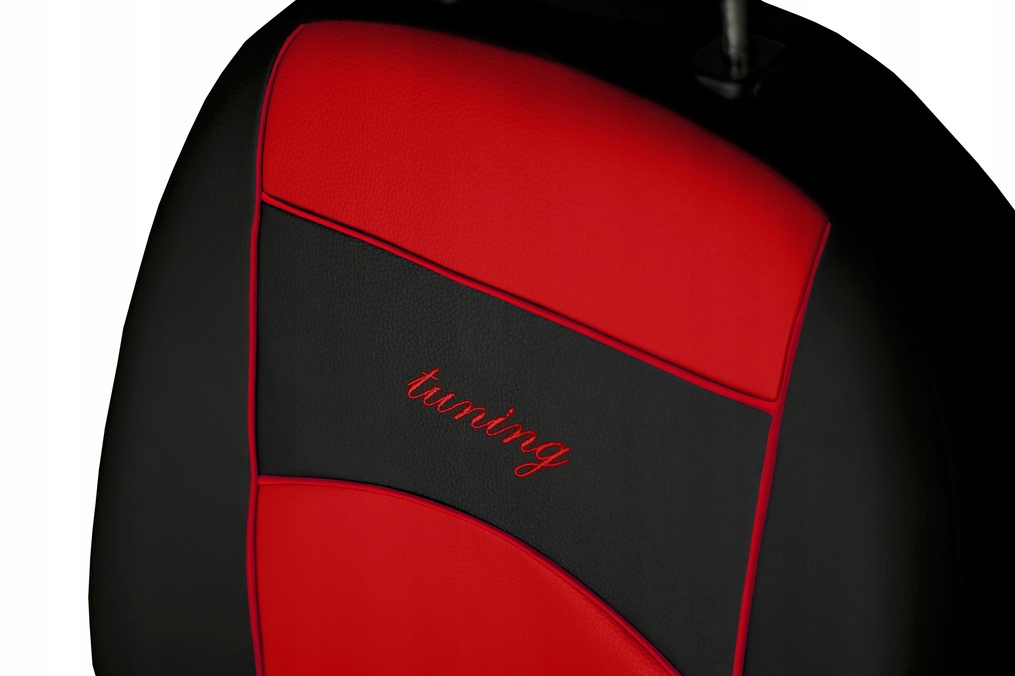 Pokrowce serii Tuning Standard zostały uszyte z wysokiej jakości ekoskóry (części przednie) oraz z dzianiny poliestrowej w kolorze czarnym (plecy, boki oraz zagłówki). Użyta ekoskóra jest materiałem mocnym, odpornym na ścieranie i uszkodzenia mechaniczne oraz nieprzemakalnym, przez co jest bardzo łatwa w utrzymaniu czystości. Materiał nie farbuje, nie powoduje alergii. Plecy pokrowców przednich foteli są pełne, standardowo zastosowano szew airbag. Na frontach dwóch przednich fotelach wszyto napis Tuning. Poszczególne elementy wzmocniono lamówką. Polski produkt firmy z ponad 20 letnim doświadczeniem - firma Pokter