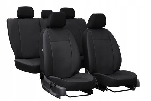 Pokrowce serii Pelle zostały uszyte z wysokiej jakości ekoskóry (części przednie) oraz z dzianiny poliestrowej w kolorze czarnym (plecy, boki oraz zagłówki). Użyta ekoskóra jest materiałem mocnym, odpornym na ścieranie i uszkodzenia mechaniczne oraz nieprzemakalnym, przez co jest bardzo łatwa w utrzymaniu czystości. Materiał nie farbuje, nie powoduje alergii. Plecy pokrowców przednich foteli są pełne, standardowo zastosowano szew airbag. Polski produkt firmy z ponad 20 letnim doświadczeniem - firma Pokter