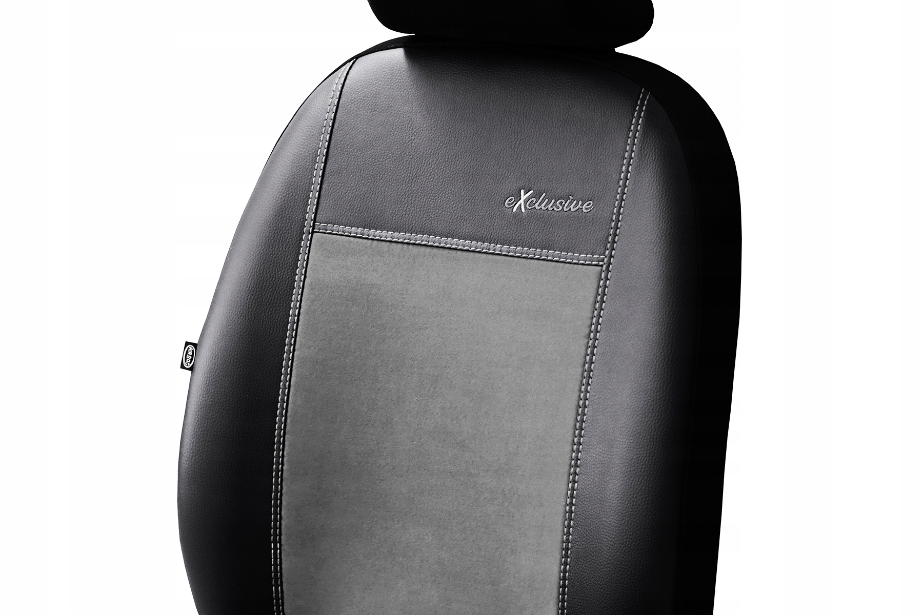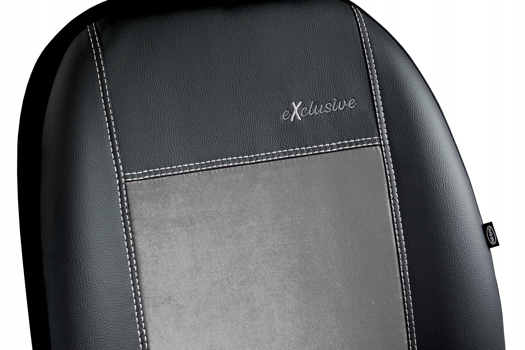 Pokrowce serii Exclusive Akantara zostały uszyte w części przedniej z wysokiej jakości ekoskóry (w kolorze czarnym) oraz alkantary (syntetycznej odmiany zamszu) w pasie środkowym. Materiały są dodatkowo laminowane i podszyte pianką. Dzianina poliestrowa w kolorze czarnym została użyta do pleców, boków oraz zagłówków. Użyta ekoskóra i miękka alkantara są materiałami mocnymi, odpornymi na ścieranie i uszkodzenia mechaniczne, przez co pokrowce są bardzo łatwe w utrzymaniu czystości. W przednich częściach pokrowców przygotowano haft eXclusive, a poszczególne elementy połączono grubym, podwójnym szyciem. Materiał nie farbuje, nie powoduje alergii. Plecy pokrowców przednich foteli są pełne, standardowo zastosowano szew airbag. Polski produkt firmy z ponad 20 letnim doświadczeniem - firma Pokter