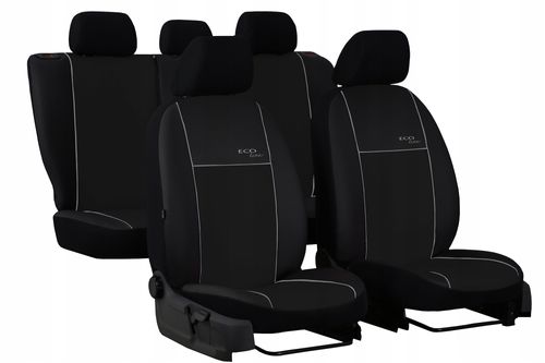 Pokrowce serii Ecoline zostały uszyte z wysokiej jakości ekoskóry (części przednie) oraz z dzianiny poliestrowej w kolorze czarnym (plecy, boki oraz zagłówki). Użyta ekoskóra jest materiałem mocnym, odpornym na ścieranie i uszkodzenia mechaniczne oraz nieprzemakalnym, przez co jest bardzo łatwa w utrzymaniu czystości. Materiał nie farbuje, nie powoduje alergii. Plecy pokrowców przednich foteli są pełne, standardowo zastosowano szew airbag. Na frontach dwóch przednich fotelach wszyto napis Ecoline. Poszczególne elementy wzmocniono lamówką. Polski produkt firmy z ponad 20 letnim doświadczeniem - firma Pokter