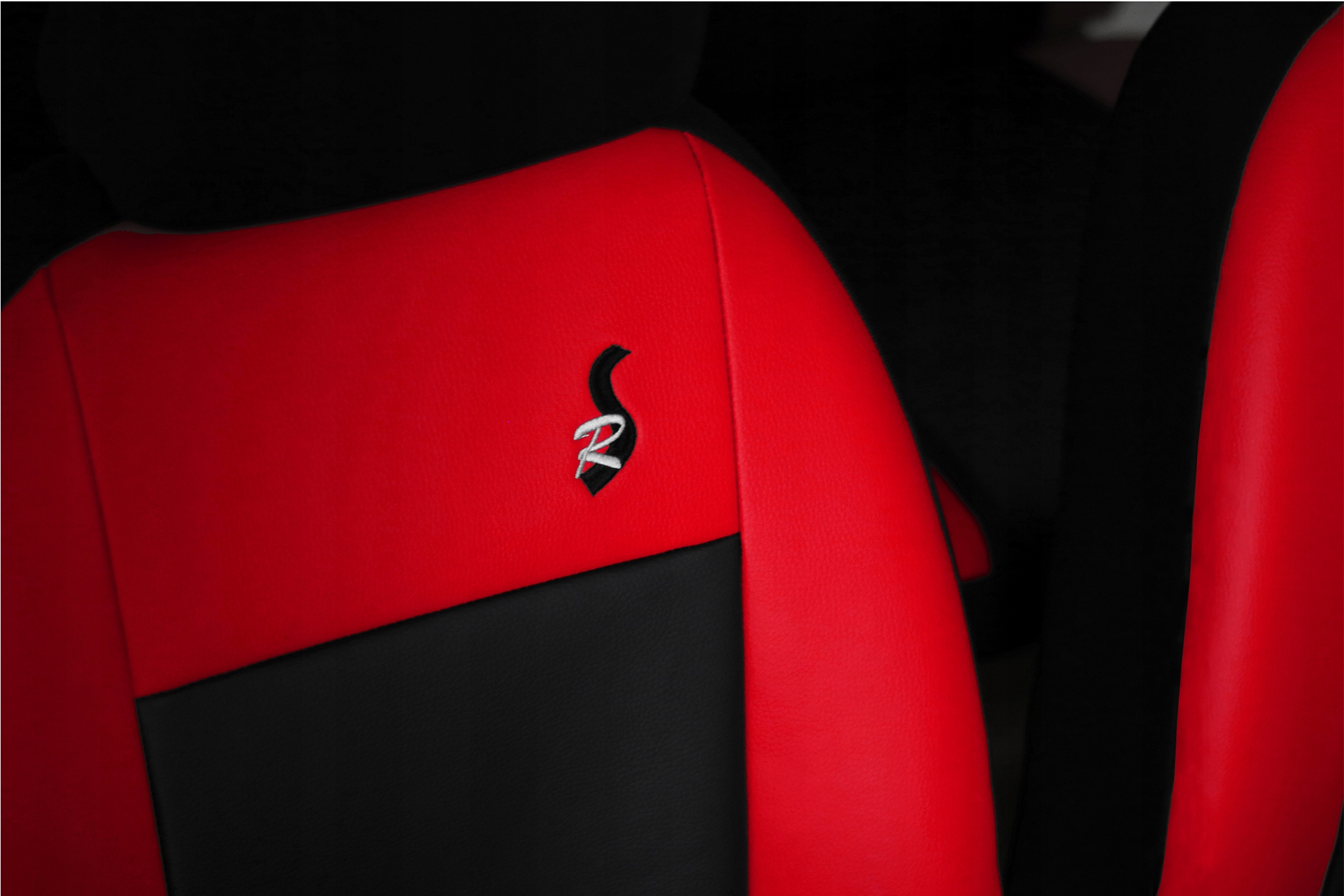 Pokrowce serii Road zostały uszyte z wysokiej jakości ekoskóry (części przednie) oraz z dzianiny poliestrowej w kolorze czarnym (plecy, boki oraz zagłówki). Użyta ekoskóra jest materiałem mocnym, odpornym na ścieranie i uszkodzenia mechaniczne oraz nieprzemakalnym, przez co jest bardzo łatwa w utrzymaniu czystości. Materiał nie farbuje, nie powoduje alergii. Plecy pokrowców przednich foteli są pełne, standardowo zastosowano szew airbag. Na frontach dwóch przednich fotelach wszyto elegancki haft. Polski produkt firmy z ponad 20 letnim doświadczeniem - firma Pokter