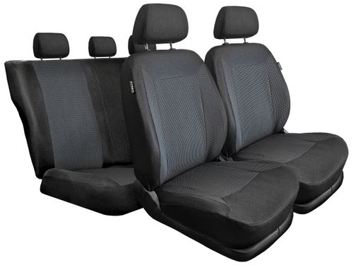 Połączenie tych materiałów zapewnia elegancki, a jednocześnie stonowany wygląd oraz skuteczną ochronę foteli przed zabrudzeniami i przetarciami.