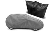 Materiał tekstylny, z którego wykonana jest plandeka dopasuje się zarówno do nieco mniejszego, jak i większego samochodu o podobnym kształcie i wymiarze nie przekraczającym podanego powyżej obwodu.