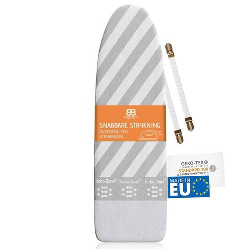 Pokrowiec na deskę do prasowania 140x50 szary. Pokrowiec na deskę do prasowania do żelazka parowego (rozmiar L) | Uniwersalny do maks. 140x50 cm. SZYBKIE IRONOWANIE - Powłoka wykładziny deski do prasowania przepuszcza parę wodną i odbija ciepło, co pozwala na prasowanie bez zmarszczek i zagnieceń. ŁATWE ŻELAZKO - Pokrowiec na deskę do prasowania posiada Strefę Turbo, dzięki której prasowanie jest jeszcze łatwiejsze. Wystarczy 3 razy przejechać gorącym żelazkiem po strefie i cieszyć się komfortowym prasowaniem przy niewielkim wysiłku. WYSTARCZY WYŁĄCZYĆ - Gorące żelazko można zaparkować w dedykowanej strefie parkowania na okres do 10 minut w maksymalnej temperaturze 200°C, co zapewnia większą elastyczność. DOBRA JAKOŚĆ - bawełniany pokrowiec na żelazko z certyfikatem Oeko-Tex Standard 100 z 2 dołączonymi napinaczami, ułatwiającymi montaż bez zsuwania się i praktycznym e-bookiem z końcówkami do prasowania. WSZECHSTRONNY - Uniwersalny pokrowiec na deskę do prasowania jest kompatybilny ze wszystkimi markami i dostępny w 2 praktycznych rozmiarach. Rozmiar M jest odpowiedni dla szerokości (30-42 cm) i długości (100-120 cm), a rozmiar L jest odpowiedni dla szerokości (39-52 cm) i długości (120-140 cm). Pokrowiec na deskę do prasowania do żelazka parowego (rozmiar L) | Uniwersalny do maks. 140x50 cm. 4744