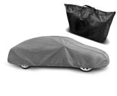 Materiał tekstylny, z którego wykonana jest plandeka dopasuje się zarówno do nieco mniejszego, jak i większego samochodu o podobnym kształcie i wymiarze nie przekraczającym podanego powyżej obwodu.