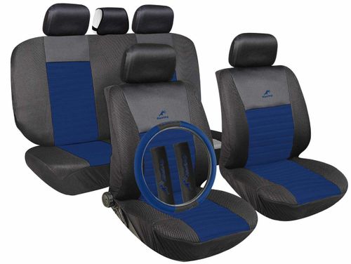 Komplet składa się z pokrowca na siedzenie kierowcy, pasażera, tylne siedzenia, pokrowiec na kierownicę oraz dwóch pokrowców do zamocowania na pas bezpieczeństwa.