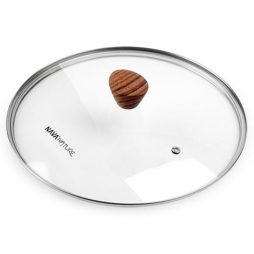 ✅ Wykonana ze szkła żaroodpornego - Pokrywka wykonana z żaroodpornego, przezroczystego szkła. Posiada obręcz wykonaną ze stali nierdzewnej w kolorze srebrnym. Uchwyt, wykonany z tworzywa imitującego drewno, jest miły w dotyku. Przezroczysty kolor pokrywki pozwoli nam na sprawdzenie procesu gotowania bez konieczności jej podnoszenia.
