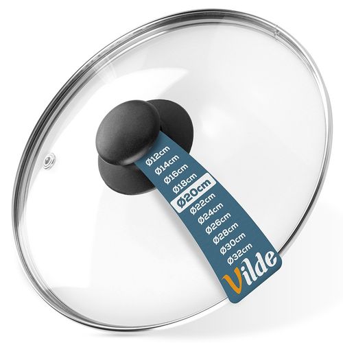 Uniwersalna pokrywka szklana, idealne pasująca do naczyń, patelni i garnków o średnicy 20 cm. Wykonana z wytrzymałych i solidnych materiałów. Będzie świetnym uzupełnieniem garnka lub patelni, które pokrywki w zestawie nie posiadały. Klasyczny kształt zapewni wygodne użytkowanie. Pokrywka jest niezbędna w każdej kuchni. Dzięki niej potrawy szybciej się gotują, a także zabezpiecza przed pryskaniem wody i tłuszczu. Dodatkowo, pokrywka sprawia, że przygotowane potrawy dłużej utrzymują temperaturę. Oryginalny produkt marki Vilde. Wyprodukowano zgodnie z europejskimi standardami.