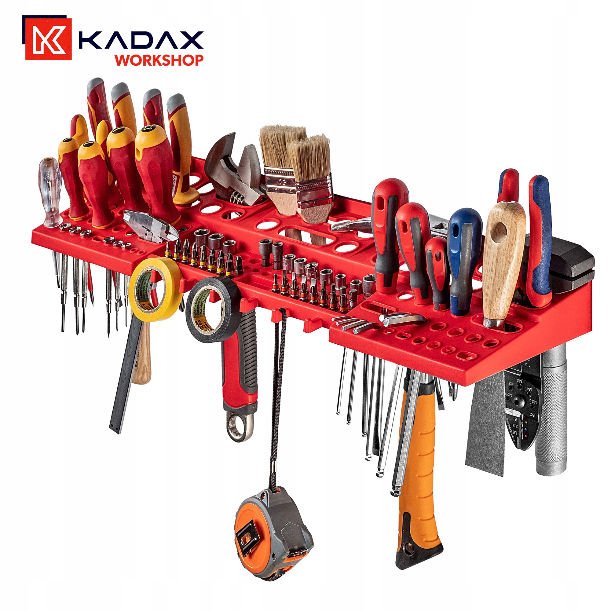 ESTETYCZNA – półka na śrubokręty i wiertła w kolorze czerwonym idealnie dopasuje się do wyposażenia warsztatowego. Dzięki estetycznemu wykonaniu będzie świetnym pomysłem na prezent dla każdego majsterkowicza.
