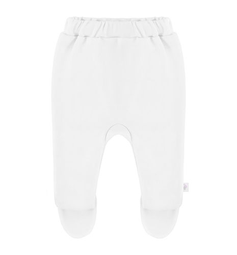 Białe półśpiochy uszyte z wysokiej jakości, bardzo miękkiej i przyjemnej w dotyku bawełny. Szeroka, elastyczna gumka w pasie zapewnia komfort noszenia na wysokim poziomie - nie uciska brzuszka i dobrze utrzymuje spodenki na swoim miejscu. Nogawki z zakrytymi stópkami dobrze sprawdzają się w chłodniejsze wieczory.