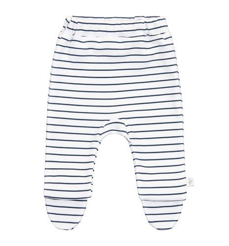 Mięciutkie i delikatne półśpiochy z wysokiej jakości bawełny. Uszyte w Polsce, z najwyższą starannością, zapewniają maluchowi komfort na najwyższym poziomie. Białe półśpiochy w granatowe paseczki to dobry wybór zarówno dla dziewczynki, jak i dla chłopca. Wygodna, elastyczna gumka w pasie dobrze utrzymuje spodenki i nie uciska brzuszka. Pełne, zakryte stópki to doskonały sposób dla malucha, który rozkopuje się w nocy.