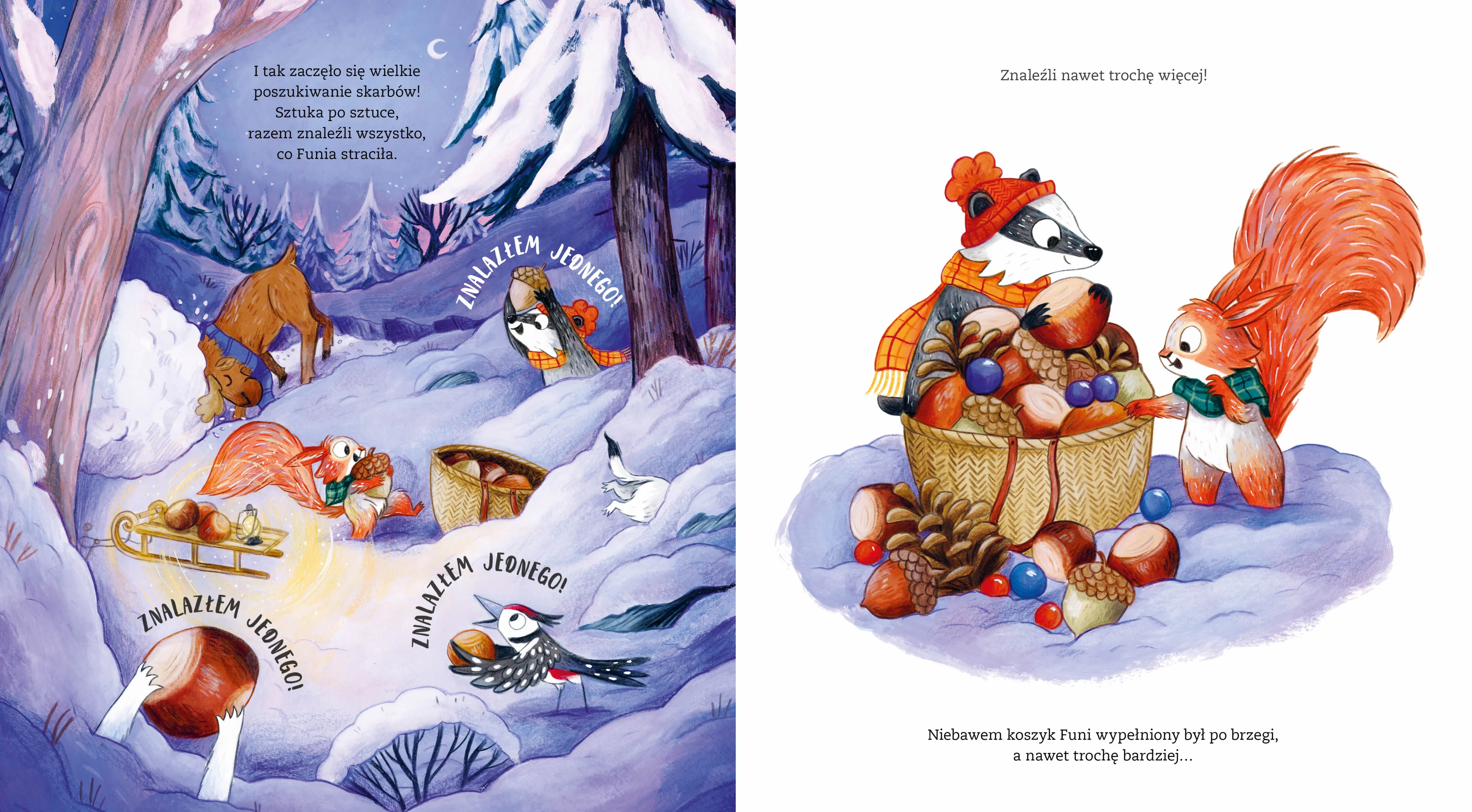UROCZY, CIEPŁY I ZABAWNY BESTSELLER AUTORKI ?ODWAGI, ZAJCZKU?, JEDNEJ Z ULUBIONYCH KSIŻEK DZIECI W 30 KRAJACH. BAJECZNIE KOLOROWA, PRZEPIĘKNIE ILUSTROWANA, RADOŚNIE WZRUSZAJCA, OPOWIEŚĆ O SAMODZIELNOŚCI I PRZYJAŹNI. Funia to bardzo dzielna i samodzielna mała wiewiórka. Nadszedł czas, kiedy wiewiórki zbierają i przynoszą do domu zgromadzone jesienią zapasy jedzenia na zimę. I Funia chce to wszystko zrobić SAMA! Babcia przestrzega ją, że sama sobie z tym wszystkim nie poradzi. Przyjaciele chcą jej pomóc. Ale Funia jest zdecydowana! Do biegu! Gotowa! Start! Czy na pewno Funia nie potrzebuje pomocy? I czy wśród zabawnych przygód i wielkich starań mała wiewiórka przekona się, że nieraz trzeba większej odwagi, by przyjąć pomoc, niż samemu podejmować się zbyt trudnych zadań? Ta piękna i mądra książka uczy dziecko, że prawdziwa odwaga i odpowiedzialność nie polegają na samodzielnym wykonywaniu przerastających je zadań i zachęca do przezwyciężenia wstydu lub strachu przed korzystaniem z życzliwej pomocy. Recenzje polskich czytelników: ?Kolejna książka z serii Amberek i nasz kolejny zachwyt! Jeśli jesteście miłośnikami dziecięcej kolekcji od Wydawnictwa Amber, to na pewno znacie jej poprzednią książkę ODWAGI, ZAJCZKU!. Choć mój najmłodszy czytelnik wyrósł już z takich krótkich książeczek i od dawna sięgamy po lektury dla szkolniaków, to tę książkę przeczytaliśmy z przyjemnością. Syn wciąż ma sentyment do wielu tytułów Amberka i z radością sięgnął po POMOŻEMY CI, WIEWIÓRKO. Przeczytał ją na głos w ramach szkolnej pracy domowej. Pierwszy raz to ja słuchałam czytanej mi na głos książki do zrecenzowania. Całostronicowe ilustracje w pięknych kolorach i pełni uroku zwierzęcy bohaterowie sprawiają, że samo przeglądanie stron koi smuteczki i otula jak miękki szaliczek?. MiastoDzieci.pl ?Pięknie zilustrowana książka jednej z naszych ulubionych autorek. Uczy nas, że warto prosić o pomoc?. @do.polowy.pelna ?Styczniowy wieczór upłynął nam, tzn. mnie i moim młodszym dzieciom: czterolatce i siedmiolatkowi na lekturze bardzo przyjemnej książeczki w dużym formacie, wydanej na ładnym papierze, z wyraźnymi i przyciągającymi uwagę ilustracjami pt. POMOŻEMY CI, WIEWIÓRKO. Aż miło było popatrzeć na moje zasłuchane przedszkolaki, śledzące z uwagą przygody dzielnej wiewiórki Funi, takiej współczesnej siłaczki albo Zosi Samosi (jak to woli)?. LubimyCzytać NICOLA KINNEAR olśniła w 2019 roku swym talentem w debiucie ?Odwagi, zajączku?, który stał się jedną z najpopularniejszych i najpiękniejszych książek dla dzieci ostatnich lat. Jej wyjątkowa wrażliwość i talent do tworzenia uroczych postaci oraz malarskich, bajecznie kolorowych obrazów natury zachwyciły również w następnych książkach: ?Ciii? Cichutko!? ? o przełamywaniu nieśmiałości, ?Zmień prawa smoków, Rubinko!? ? o umiejętności dzielenia się, ?Pobaw się ze mną? ? o pokonywaniu oporów przed kontaktami z innymi i o przyjaźni mimo różnic, ?Pomożemy ci, wiewiórko? ? o samodzielności i przełamywaniu strachu lub wstydu przed korzystaniem z życzliwej pomocy. Najnowsza książka Nicoli Kinnear ? ?Odwagi, pszczółko?, która światową premierę miała w Amberku ? kontynuuje przesłanie ?Odwagi, zajączku? o pokonywaniu lęku przed nieznanym. Książki Nicoli Kinnear dają dzieciom radość i poczucie bezpieczeństwa.