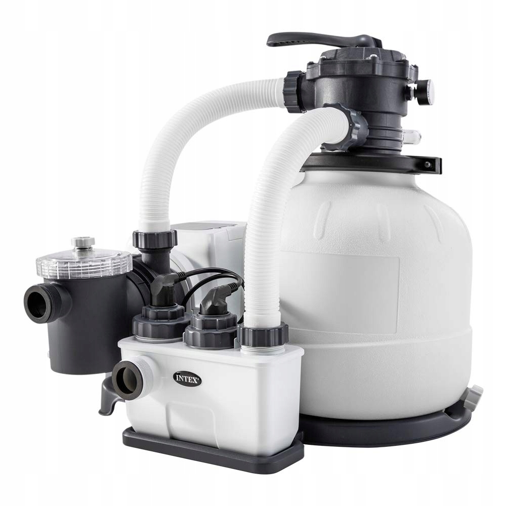 Filtracja piaskowa Krystal Clear INTEX to wysoce skuteczny i bezpieczny dla środowiska sposób utrzymania czystej wody w basenie. Jest to bardziej opłacalne rozwiązanie niż tradycyjna pompa filtrująca, ponieważ do oczyszczania wody wykorzystuje piasek krzemionkowy zamiast papierowego wkładu filtracyjnego, podczas gdy wkłady tradycyjne należy wymieniać co 2 tygodnie, piasek krzemionkowy wystarcza na 3 lata. Piasek wyłapuje brud i zanieczyszczenia, a zbiornik filtra wstępnego filtruje większe rzeczy, zapewniając czystą wodę przez cały sezon.