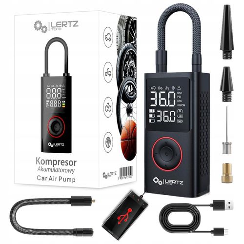 Wykonany z trwałych, certyfikowanych materiałów (CE), kompresor LERTZ™️ gwarantuje długoterminową niezawodność i bezpieczeństwo użytkowania. Podwójny wyświetlacz LCD pokazuje ciśnienie w czasie rzeczywistym oraz zadaną wartość w różnych jednostkach, a wbudowana latarka LED w dwóch kolorach (biały i czerwony) oświetla miejsce pracy lub służy jako sygnał ostrzegawczy, dodając praktyczności w nocy lub awaryjnych sytuacjach.