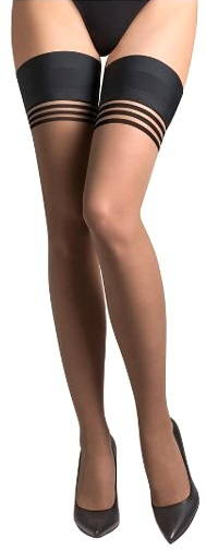 Zmysłowe zdobione paseczkami w połowie uda spodobają się paniom dbającym o detale.