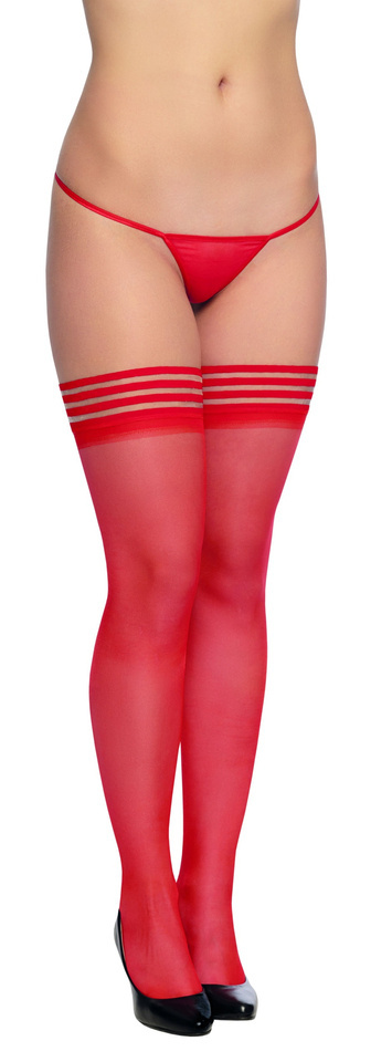 Zmysłowe zdobione paseczkami w połowie uda spodobają się paniom dbającym o detale.
