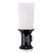 Profesjonalna karkówka fryzjerska z pojemnikiem na talk. Karkówka posiada otwierany pojemnik na talk. Stosowanie talku neutralizuje nadmiar potu, pozwala uniknąć podrażnień skóry, znacznie ułatwia usuwanie pozostałości włosów po strzyżeniu. Lekka i wygodna w użyciu, ergonomiczny kształt dzięki któremu karkówka idealnie leży w dłoniach.