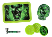 Zestaw Fosforyzujący składający się z popielniczki, tacki, lufki i młynka to doskonały wybór na prezent dla każdego miłośnika wyjątkowych akcesoriów. W skład zestawu wchodzi elegancka szklana
