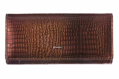 Portfel ten wyróżnia się lakierowanym brązowym wykończeniem, które nadaje mu elegancji i nowoczesnego charakteru. Jest to model marki Angela Moretti, która słynie z wysokiej jakości galanterii skórzanej. Lakierowane wykończenie sprawia, że portfel jest łatwy do utrzymania w czystości.