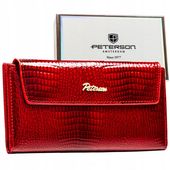 Ten elegancki portfel damski Peterson® w wersji lakierowanej ze skóry ekologicznej model z tłoczoną fakturą inspirowaną krokodylem łączy w sobie wyjątkową dbałość o detale i wygodę użytkowania. Z 12 dedykowanymi schowkami na karty oraz miejscem na dokumenty, zapewnia łatwy dostęp do wszystkich niezbędnych rzeczy, gwarantując porządek i pewność siebie w każdej sytuacji.