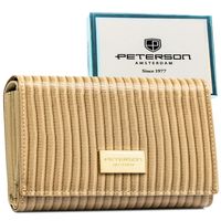 Portfel damski ze skóry naturalnej i ekologicznej w beżowym kolorze ze wzorem plecionki - Peterson