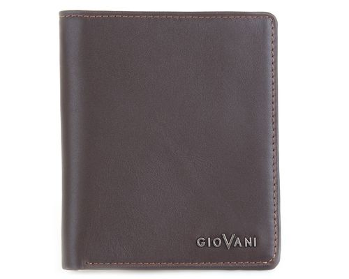 Portfel męski z matowej skóry z ozdobnym napisem Giovani w srebrnym kolorze. W środku posiada bardzo klarowny układ kieszeni oraz przegród. Po prawej stronie znajduje się kieszeń na monety zapinana na zamek błyskawiczny, a pod nią dwie płaskie kieszenie. Po lewej stronie znajduje się 7 miejsc na karty płatnicze, z których ostatnia od dołu ma ścięte rogi, co ułatwia wkładanie i wyjmowanie kart. Pod siedmioma przegrodami na karty, znajduje się też dodatkowa płaska kieszeń. Miejsca w portfelu wieńczą dwie przegrody na banknoty. Prosta stylistyka portfela i jego klarowny układ w środku, zwrócą uwagę każdego mężczyzny szukającego prostych, praktycznych rozwiązań oraz ceniącego powściągliwą estetykę w dobrym guście.