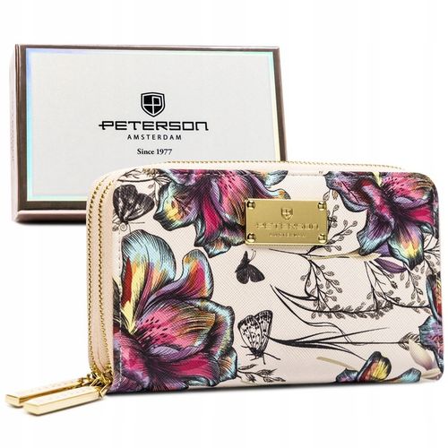 Ten portfel damski marki Peterson z eko skóry to doskonały przykład łączenia ponadczasowej elegancji z modnym designem. Jego unikatowy kwiatowy wzór i złote akcenty tworzą wyjątkową kompozycję, która doda klasy każdej stylizacji.