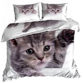 Pościel przedstawiająca malutkiego kotka z uniesioną łapką.