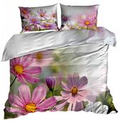 Pościel przedstawiająca śliczne polne kwiaty w kolorze różowo-fioletowym.