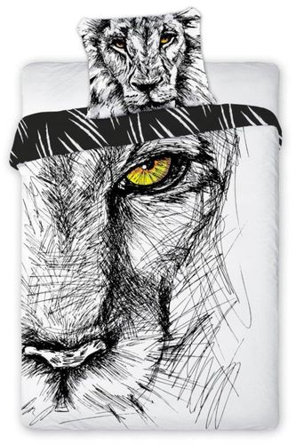 Młodzieżowa pościel 160x200 uszyta jest z wysokiej jakości bawełny. Trwały i wyraźny nadruk wyróżnia tą pościel spośród innych. Pościel bawełniana posiada gładką strukturę, miłą dla skóry, tkanina nie jest śliska ani szorstka. Sen w takiej pościeli bez wątpienia będzie komfortowy. Pościel z lwem posiada certyfikat bezpieczeństwa Oeko-Tex Standard 100 (Tekstylia godne zaufania). Nadruk przedstawia czarno-białego lwa.