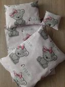 Pościel dla lalki do wózka łóżeczka kołyski 4 elementy miś misie