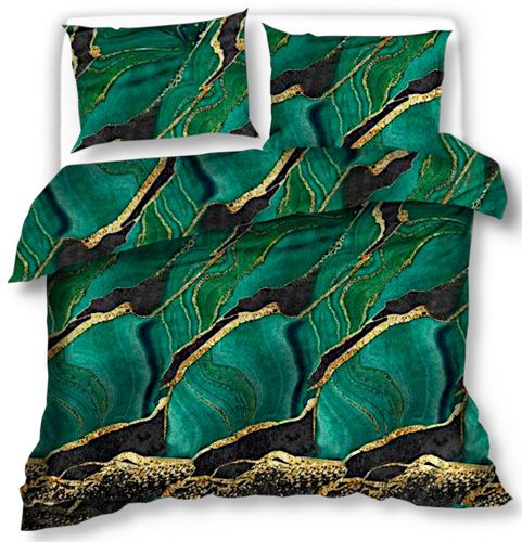 Elegancka pościel 200x220 z mikrowłókna satynowego stanowi świetny pomysł na prezent. Pościel wzór marmuru z pewnością wpasuje się do każdego wystroju wnętrza. Pościel 3D cechuje się oryginalnym wzornictwem zaprojektowanym w Polsce. Tkanina, z której uszyta jest pościel, to 100% mikrowłókno o splocie satynowym. Struktura nie jest śliska ani szorstka - bardzo miła w dotyku. Dominujący kolor pościeli to ciemna zieleń.