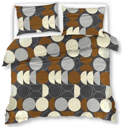 Uniwersalny zestaw poszewki na kołdrę i poszewek na poduszki to idealnie spójny prezent lub praktyczny upominek. Neutralne barwy, jakie występują na komplecie pościeli, wpasują się do większości wnętrz. Nawet wtedy, gdy nie wiemy, jak urządzona jest sypialnia bliskich. Brązowo-beżowe koła to wzór, jaki został nadrukowany. Jest trwały i wyraźny. Pościel jest zatem świetnym rozwiązaniem, gdy brakuje pomysłów na urodziny lub imieniny członków rodziny.