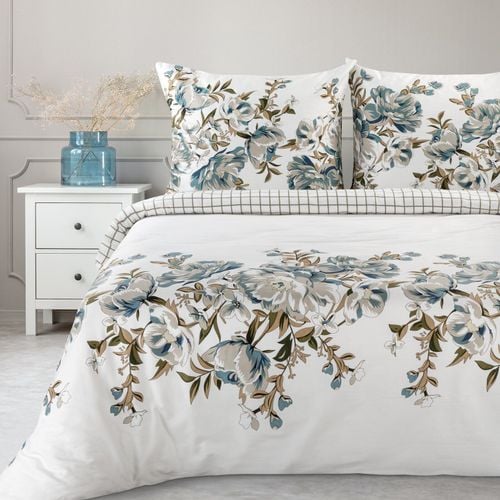 Komplet Spring od Eurofirany to połączenie klasyki i delikatnej elegancji. Wykonany z naturalnej satyny bawełnianej o gramaturze 115 g/m², zapewnia przyjemny połysk i komfort termiczny o każdej porze roku. Subtelny wzór kwiatowy w odcieniach szarości i stali na białym tle nadaje wnętrzu lekkości i świeżości, wpisując się idealnie w nowoczesne i minimalistyczne aranżacje.