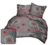 Prezentowany komplet posiada ciekawy, estetyczny wzór czerwonych dmuchawców na grafitowym tle.