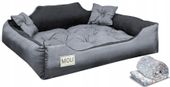 Legowisko zostało starannie wykonane z miękkiej mikrofibry, co zapewnia wygodę podczas leżenia. Górna część legowiska jest w eleganckim szarym kolorze, a spód — czarny, co sprawia, że doskonale wpisuje się w różne style wnętrz. Wypełnienie z wysoko puszystej włókniny gwarantuje doskonałą izolację i wsparcie, a grubość poduszki wynosząca około 10 cm sprawia, że Twój pies zanurzy się w przyjemnym cieple.
