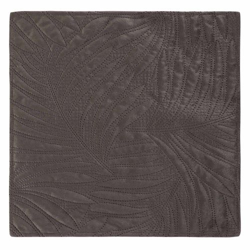 Ciemno szara poszewka dekoracyjna zdobiona w delikatny wzór w liście palmy.