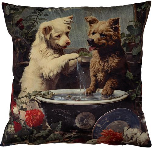 Poszewka 40x40 została wykonana z miękkiego, miłego w dotyku weluru, który doskonale prezentuje się w każdym wnętrzu – od nowoczesnego po klasyczne. Nadruk przedstawiający dwa urocze pieski przyciąga uwagę i dodaje ciepła przestrzeni. Obie strony poszewki zdobi ten sam nadruk, co czyni ją atrakcyjną z każdej perspektywy.