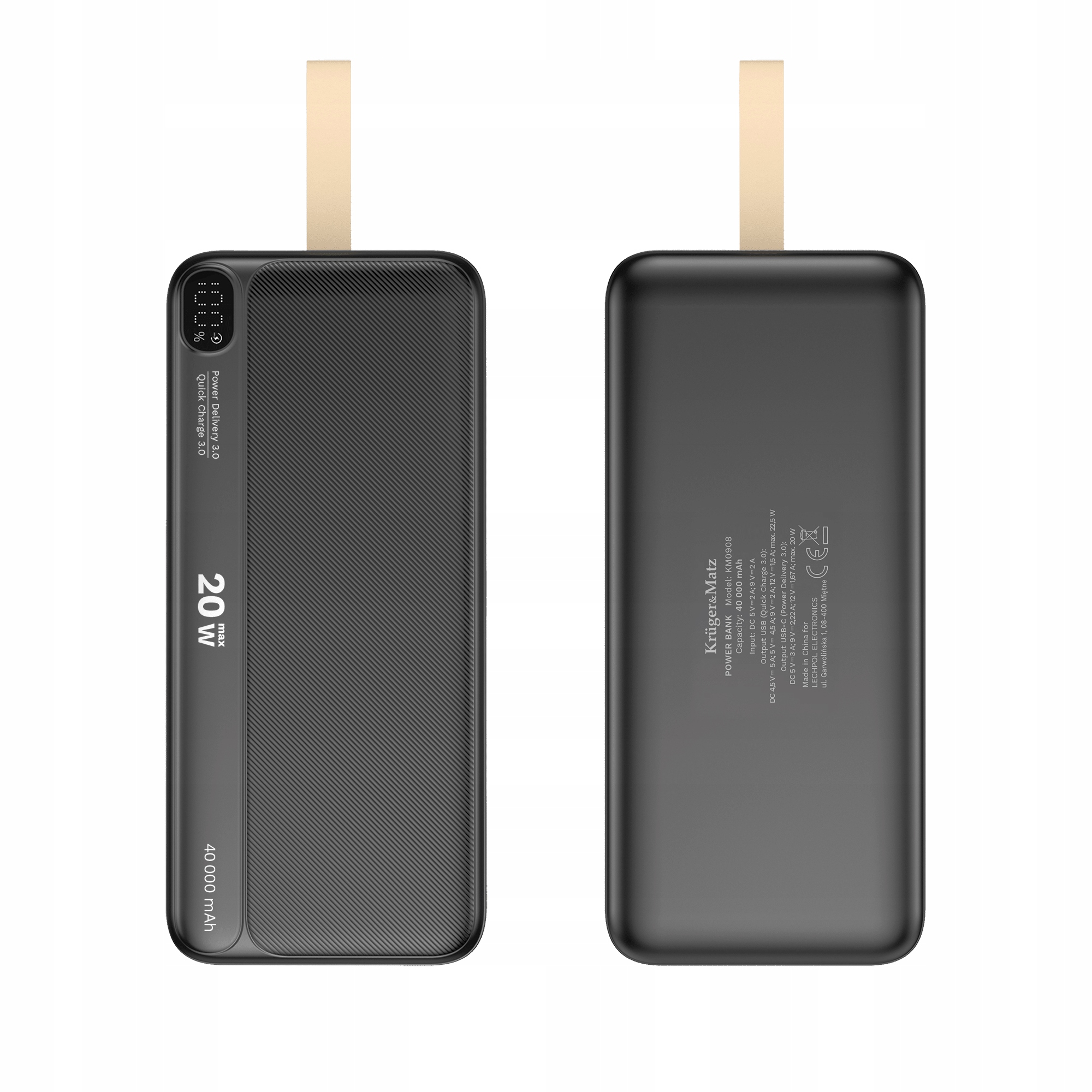 Wyposażony w dwa porty USB, USB-C i micro USB pojemny power bank Kruger&Matz oferuje szeroki zakres kompatybilności. Dzięki swojej zaawansowanej funkcjonalności urządzenie doskonale sprawdzi się do ładowania różnych elektronicznych urządzeń w biurze, w podróży czy na kempingu.