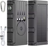 Wyposażony w wbudowany panel słoneczny, funkcję ładowania bezprzewodowego i cztery wbudowane kable USB, ten powerbank oferuje uniwersalność i prostotę działania. Ładuj swoje urządzenia w sposób, który najlepiej Ci odpowiada, bez konieczności noszenia dodatkowych akcesoriów.