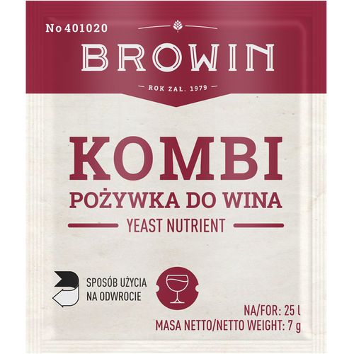 Do prawidłowego rozwoju drożdże winiarskie poza źródłem cukru potrzebują, także związków azotowych i fosforowych, w które ubogie są owoce naszego klimatu oraz witamin, głównie z grupy B. Dzięki zastosowaniu Pożywki Kombi zyskujemy odpowiednie namnożenie drożdży, szybkie rozpoczęcie fermentacji, a także pełne odfermentowanie cukru zawartego w owocach i dodanego w czasie produkcji wina. Witamina B1 stymuluje wzrost drożdży i jest silnym aktywatorem fermentacji. Komponenty nieaktywnych komórek drożdży przyspieszają namnożenie biomasy, są źródłem steroli, kwasów tłuszczowych oraz mikroelementów – magnezu i manganu. Adsorbują substancje hamujące fermentację. Związki zawarte w pożywkach są wykorzystywane całkowicie przez drożdże w trakcie ich namnażania, więc nie wpłyną na smak i aromat wina oraz na zdrowie człowieka.