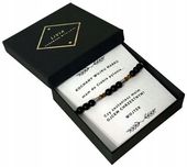 Wszystko to uzupełnia personalizacja i praktyczność. Możliwość dodania własnych życzeń lub imion na karteczce, pakowana w eleganckie pudełeczko prezentowe o wymiarach 8,6 cm x 8,6 cm z kokardką oraz dołączona metka jubilerska sprawiają, że bransoletka staje się nie tylko biżuterią, ale kluczem do osobistego, znaczącego stylu, dostosowanym do Twoich unikalnych potrzeb i wspomnień.