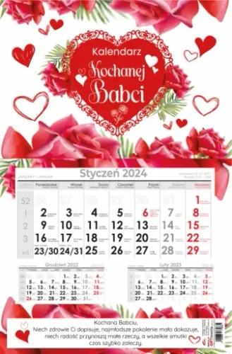 Kalendarz ma indywidualne wymiary 308x470 mm, wydrukowany jest jednostronnie, co zapewnia idealną widoczność dla każdego dnia. To nie tylko estetyczne, ale także praktyczne rozwiązanie dla każdej Babcii.